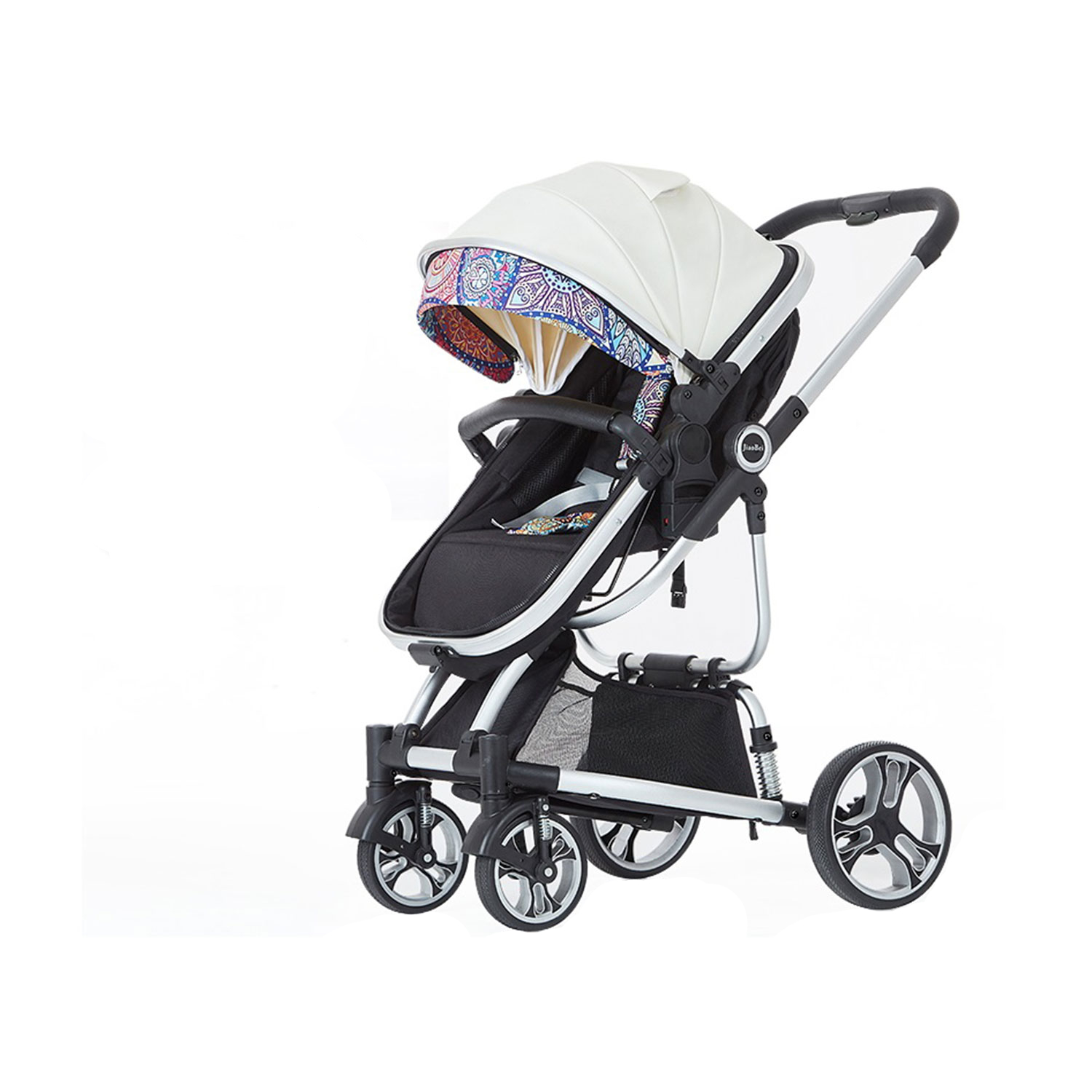 Shock absorbers on all wheels ensures a smooth ride for the baby